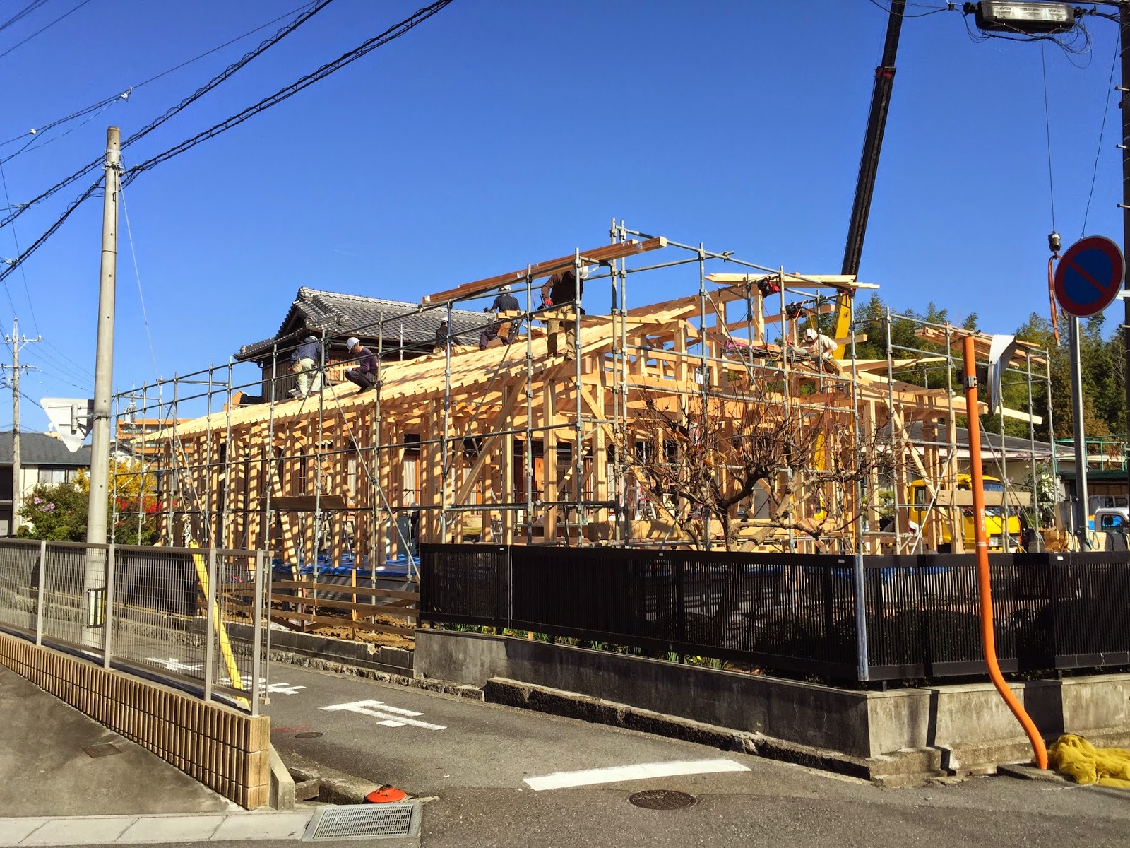 昨日の雨で、一本上棟で終わった昨日とうって変わり