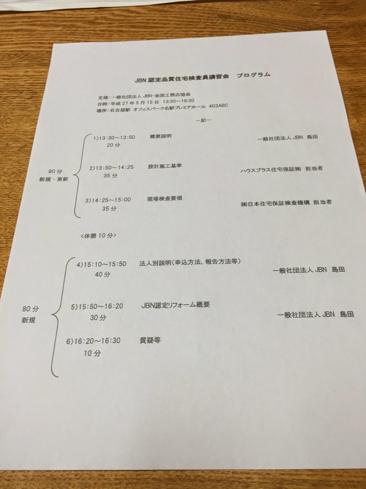 本日午後は、名駅周辺でJBN認定品質住宅検査員の更新講習に行って来ました。